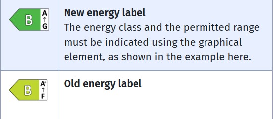 Gli annunci pubblicitari devono fornire informazioni sulla classe energetica del prodotto e sulle classi energetiche attualmente consentite dalla normativa vigente, dette "intervallo consentito". È necessario che siano rispettati i seguenti requisiti: